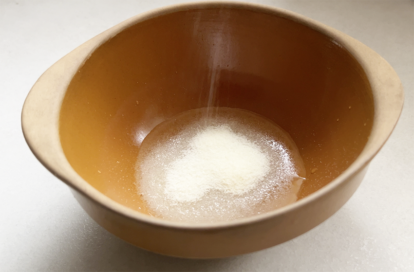 水(大さじ2)に粉ゼラチン5gを振り入れ、5分ほど置く